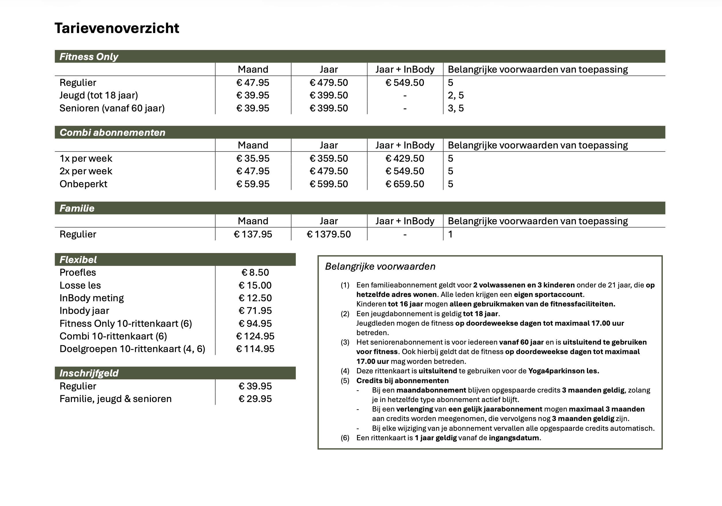 Heb je vragen over bijvoorbeeld een abonnement, credits of het volgen van een proefles?